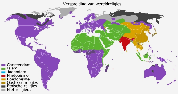 Verspreiding van de 5 wereldreligies